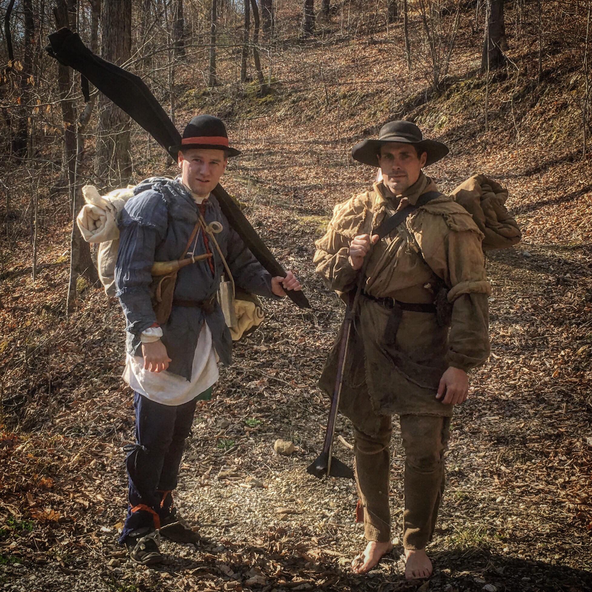 | Michael Ramsey and Myself at Locust Grove. Micheal is one of the finest 18th century tailors in the hobby today. If you can afford his work, I highly recommend. |